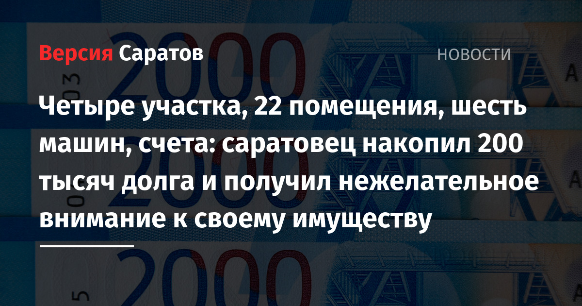 По данным приставов, речь идёт о взыскании налоговой задолженности, превышающей 200 тысяч рублей. Пристав возбудил исполнительное производство. На банковские счета мужчины наложили арест. Ограничения были также наложены на совершение регистрационных действий с четырьмя земельными участками, 22 помещениями и шестью транспортными средствами.