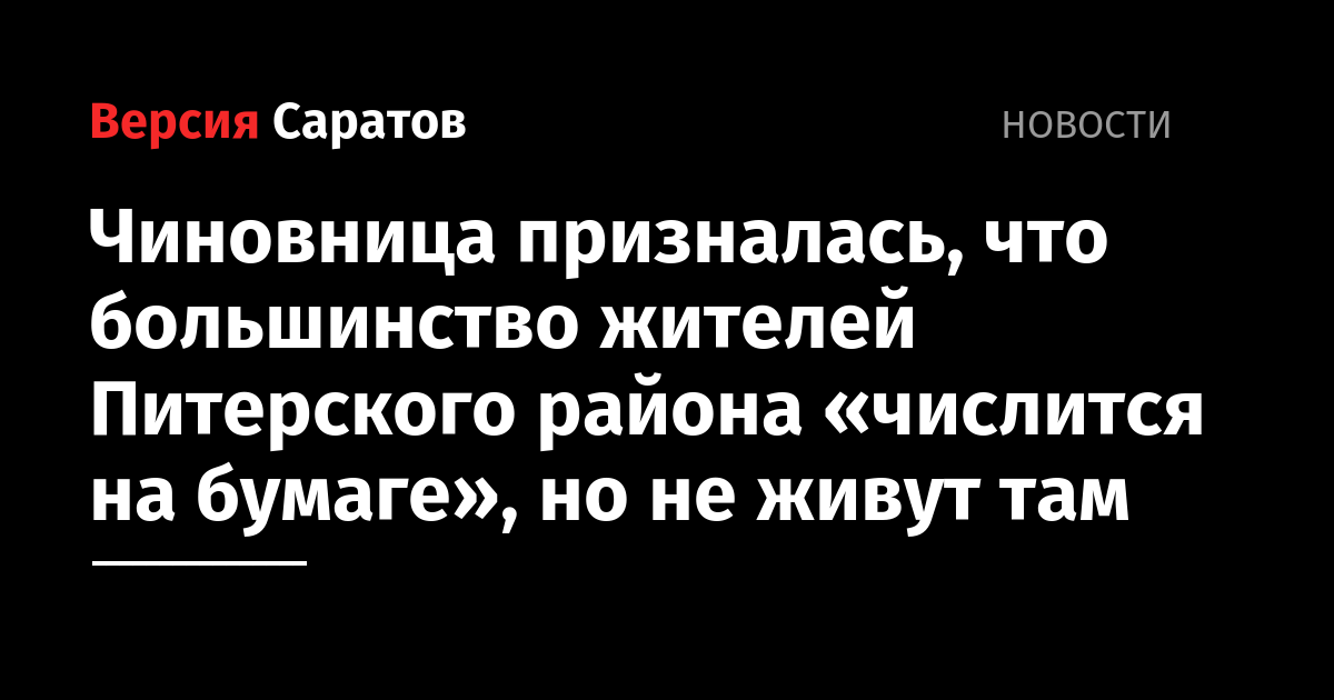 Чиновница призналась, что большинство жителей Питерского района «числится на бумаге», но не живут там