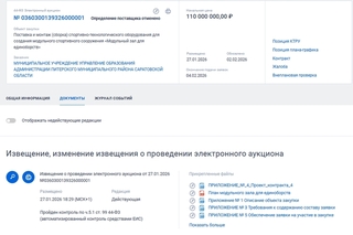 Чиновникам пришлось экстренно отменять и объявлять заново закупку на поставка и монтаж спортивно-технологического оборудования для создания модульного спортивного сооружения «Модульный зал для единоборств» в селе Питерка Саратовской области за 110 миллионов рублей. Причина — ошибки в документации, на которые обратили внимание потенциальные подрядчики.
