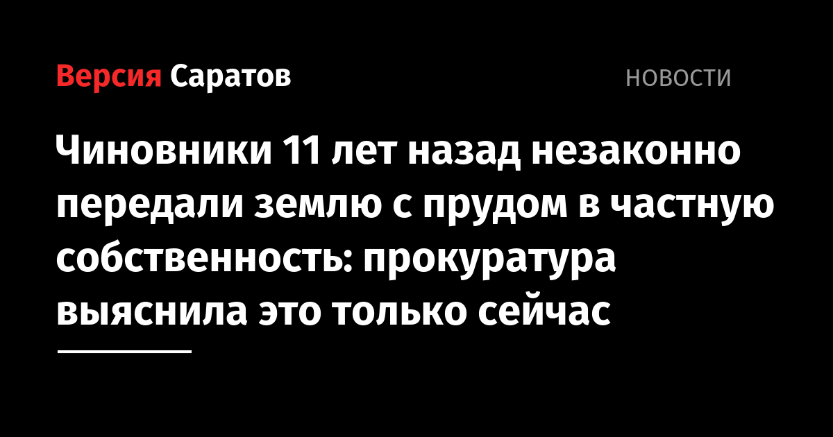 Как установило ведомство, администрация в 2008 году передала в собственность местному жителю сельскохозяйственный участок, расположенный на территории Елшанского муниципального образования. По данным надзорного органа, на предоставленной земле расположен пруд в русле реки Сухая Елшанка. А согласно российскому законодательству водные объекты относятся исключительно к собственности Российской Федерации. Однако чиновники поставили земельный участок на кадастровый учет без определения на нем пруда, а затем передали в собственность.