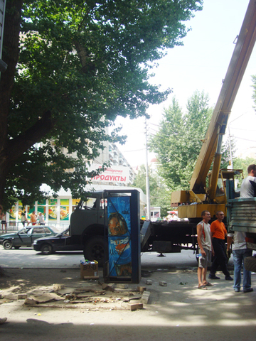 Вскоре подъехал подъемный кран и грузовик, в кузове которого уже был загружен один ларек. Предприниматель с тоской в глазах смотрел, как его бывшую торговую точку поднимают краном и увозят. При попытке это запечатлеть к нашему корреспонденту подошла девушка, которая стояла рядом с Алексеем Сергеевичем, судя по всему, тоже сотрудница администрации, и осведомилась, кто он и что здесь делает. После того, как он показал ей удостоверение и попросил представиться в ответ, та сказала, что она всего лишь прохожий.