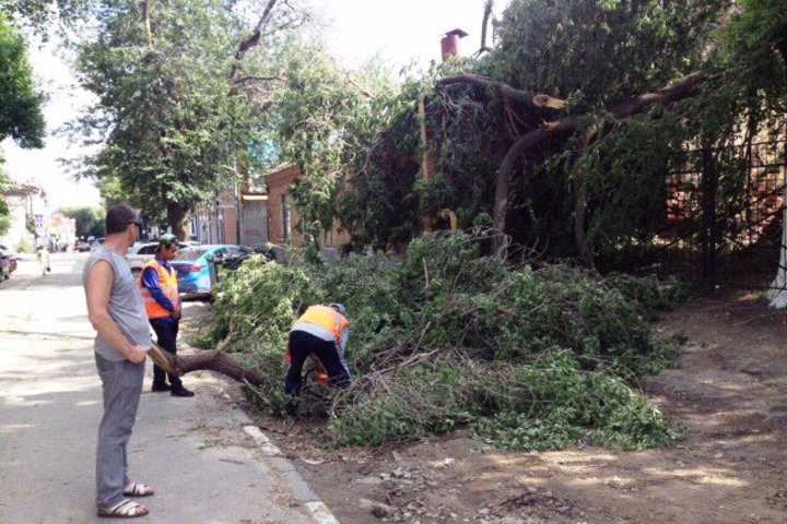 Администрация Волжского района Саратова сообщает, что дерево на улице Соляная распиливают специалисты подрядной организации. Из-за урагана дерево рухнуло на дом.