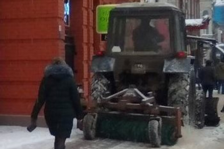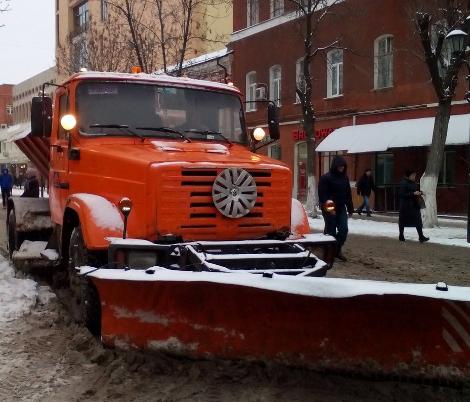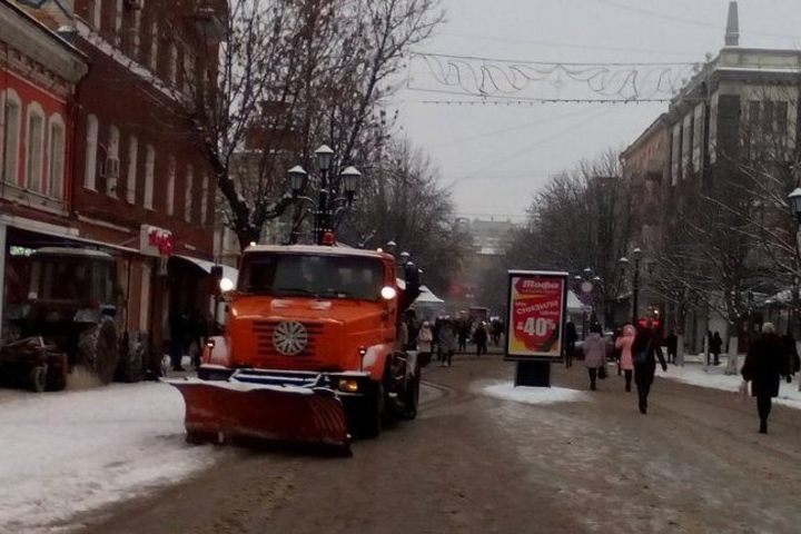 На проспекте Кирова в Саратове ведется уборка снега. Пешеходную зону очищает специализированная техника - 4 машины.