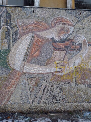 Она сообщила, что создателем мозаик является Анвар Абдуллаев, известный художник, который работал над этим проектом в Балашове с 1988 года. Процесс создания занял три года — от эскизов до окончательной реализации. Центральные фигуры на фасаде изображают персонажей с колоколами и скрипкой, полных внутреннего напряжения, а по краям находятся безмятежный иконописец и мечтательная девушка с одуванчиками. У входа, повторяя движение посетителей, изображены мальчик и муза с венком.