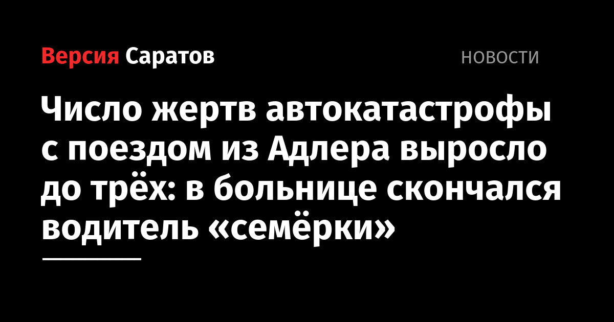 В Саратове скончался третий мужчина, который был в автомобиле ВАЗ-2107, когда в него врезался поезд. Об этом сообщил в своем Telegram-канале министр здравоохранения Саратовской области Олег Костин.