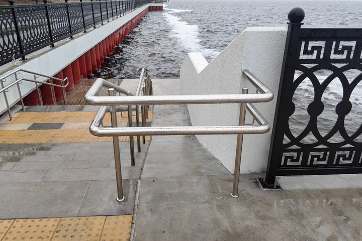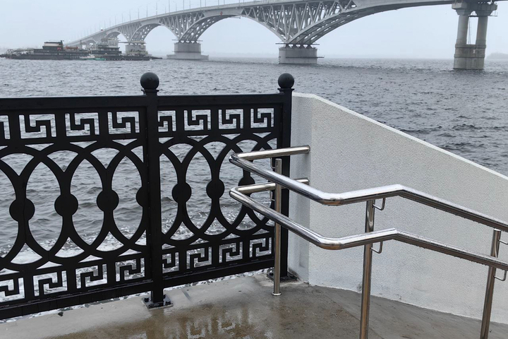 В Саратове на спусках нового участка набережной рядом с мостом Саратов-Энгельс установили странные конструкции непонятного назначения. Об этом ИА «Версия-Саратов» сообщили недоумевающие местные жители.