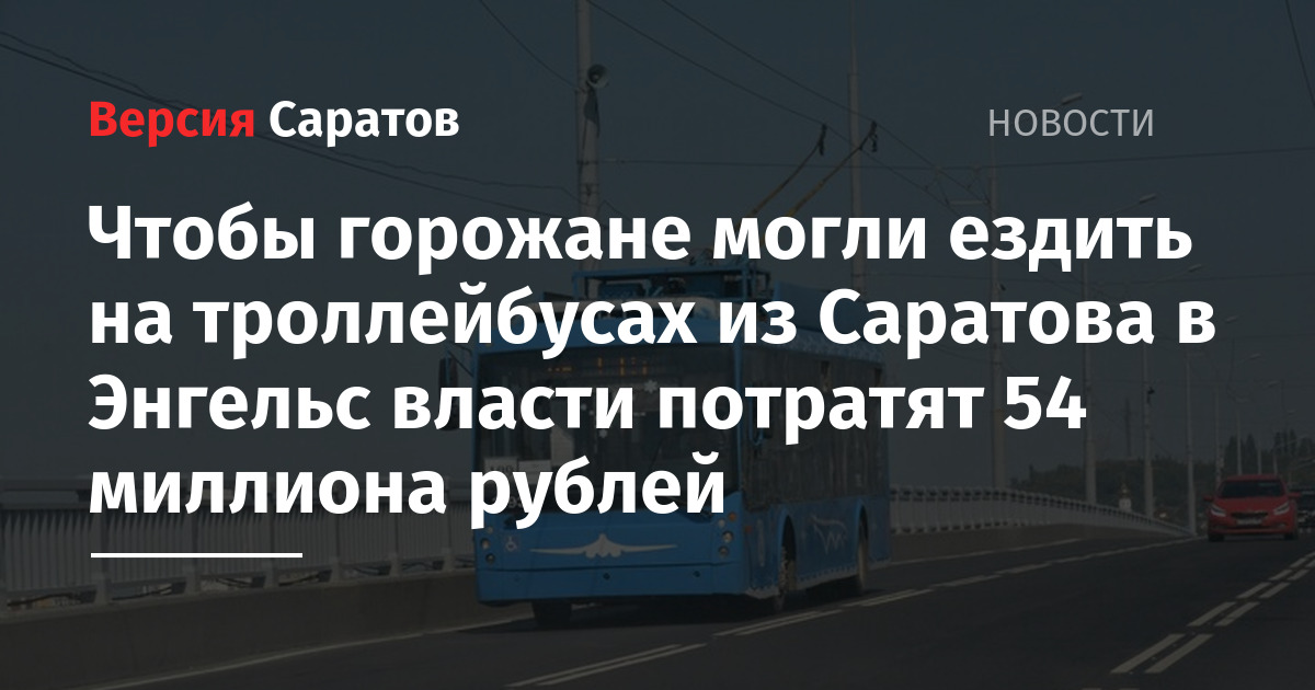 Чтобы горожане могли ездить на троллейбусах из Саратова в Энгельс власти потратят 54 миллиона рублей