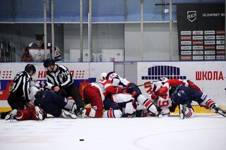 «Даже судье досталось», — отметил комментатор матча, когда двое арбитров разнимали хоккеистов.