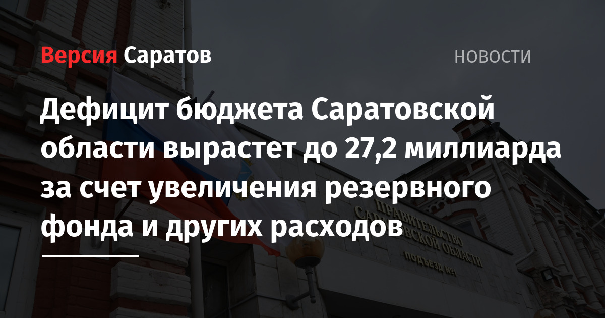 Дефицит бюджета Саратовской области вырастет до 27,2 млрд рублей, в целом расходы увеличатся на 7 млрд 642,2 млн рублей, следует из поправок, которые внесены сегодня минфином региона на заседание профильного комитета Саратовской областной думы.