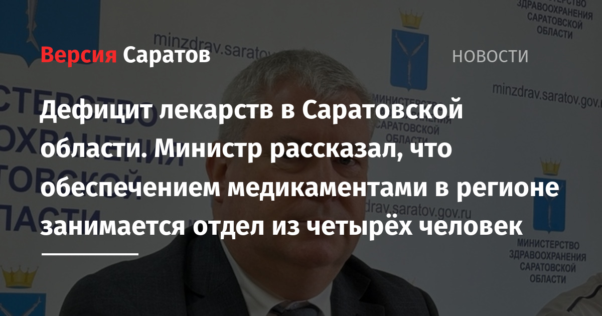 Лекарственным обеспечением в минздраве Саратовской области занимается отдел из четырёх человек. Об этом в ходе совещания с губернатором Романом Бусаргиным заявил министр здравоохранения региона Владимир Дудаков.