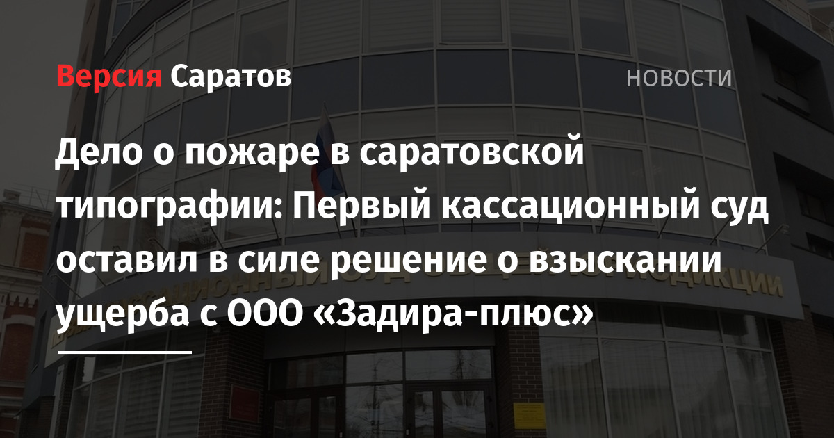 В Первом кассационном суде общей юрисдикции рассмотрели дело о пожаре в саратовской типографии, расположенной по адресу: проспект 50 лет Октября, 109 в Ленинском районе. Здание полыхнуло ещё в ноябре 2021 года, однако разбирательства вокруг этого ЧП завершились только 24 января 2024 года.