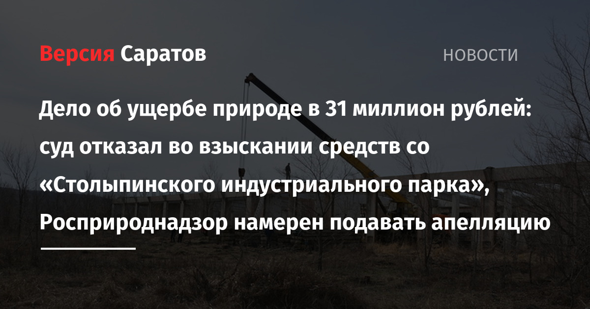 Сегодня, 25 февраля, в Арбитражном суде Саратовской области завершилось судебное разбирательство по иску Росприроднадзора к ООО «Управляющая компания „Столыпинский индустриальный парк“».