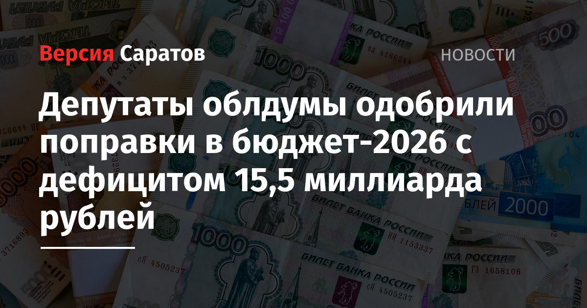 Дефицит бюджета Саратовской области на 2026 год составит 15,48 млрд рублей. Сегодня в ходе заседания областной думы депутаты приняли поправки, за счет которых доходы выросли до 191,5 млрд рублей, расходы — до 207 млрд рублей.