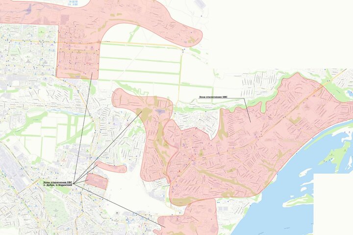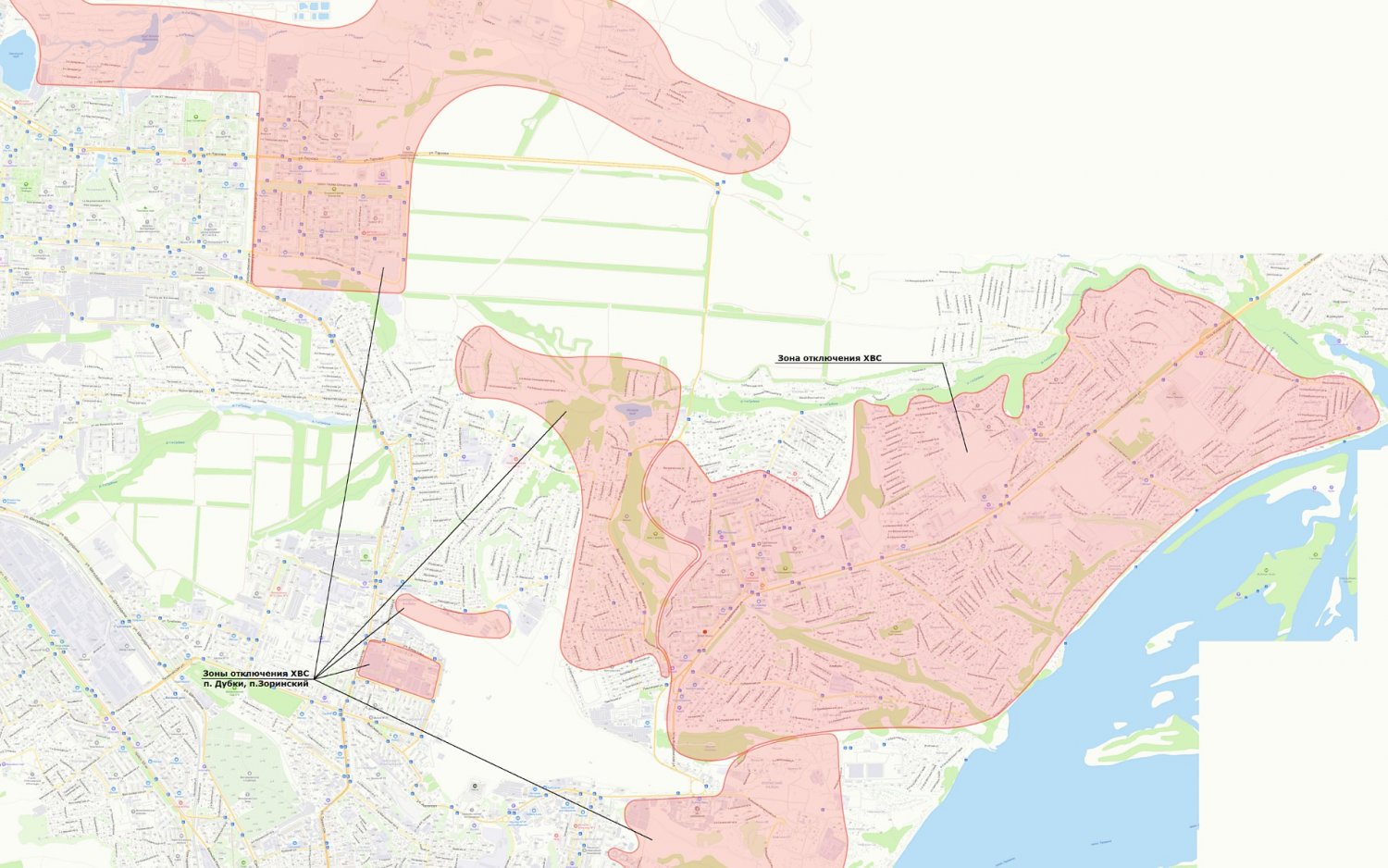 Схематически зона отключения холодной воды обозначена на карте ниже.