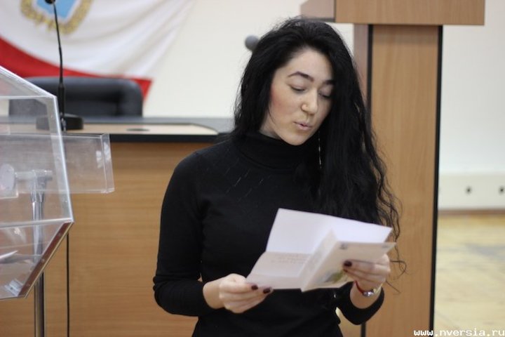 После этого рабочая группа наполнила барабан конвертами. Девушка из числа тех, кто получил сегодня квартиры, перемешала содержимое барабана и достала конверты по одному.