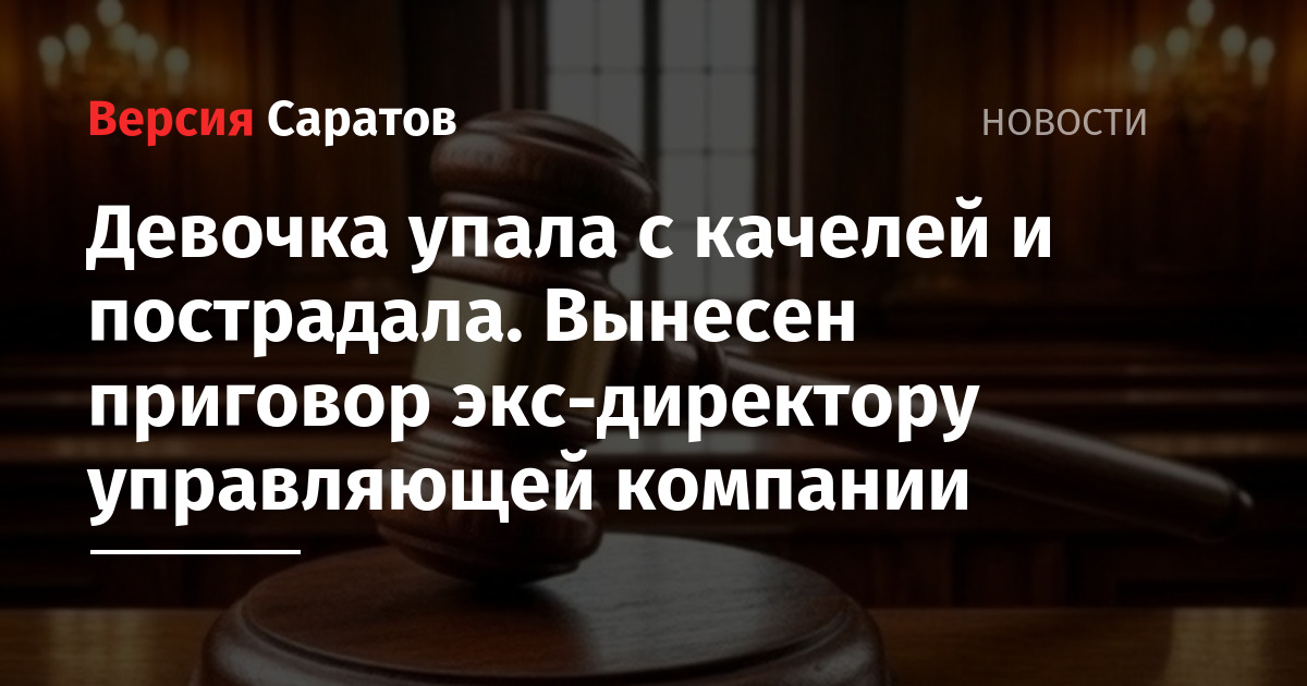 По информации ведомства, в марте 2024 года с качелей на детской площадке у дома на улице Кривохижина в Саратове упала девочка. Несовершеннолетняя пострадала, вред её здоровью оценили как средней степени тяжести.