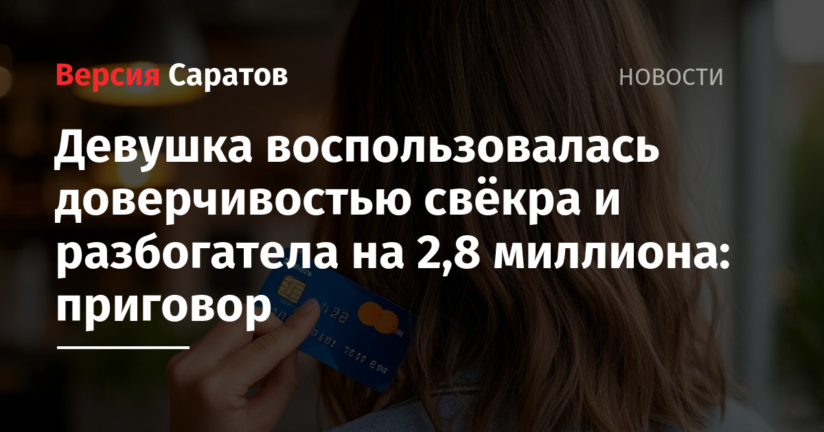По данным надзорного органа, в период с 25 июля по 3 сентября 2025 года девушка, имея доступ к мобильному телефону и банковской карте 72-летнего свекра, сняла в банкомате, а также перевела на банковские счета отца и свой более 2,8 миллиона рублей.