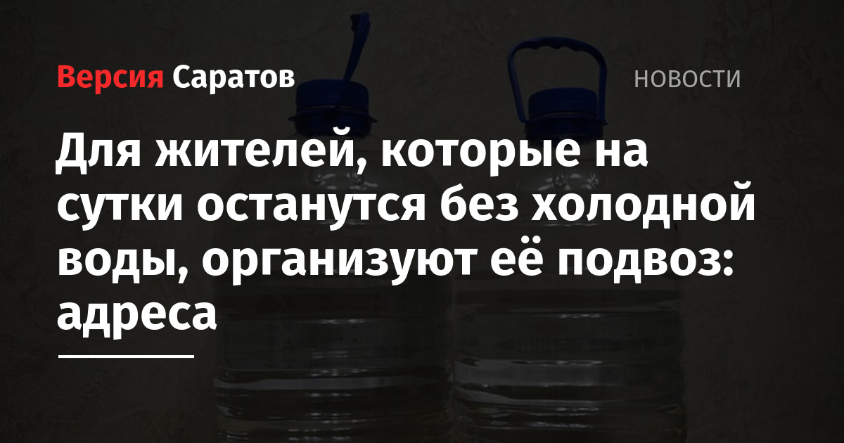 Для жителей Саратова, которые на сутки останутся без холодной воды, организуют её подвоз. Об этом сообщили в мэрии.