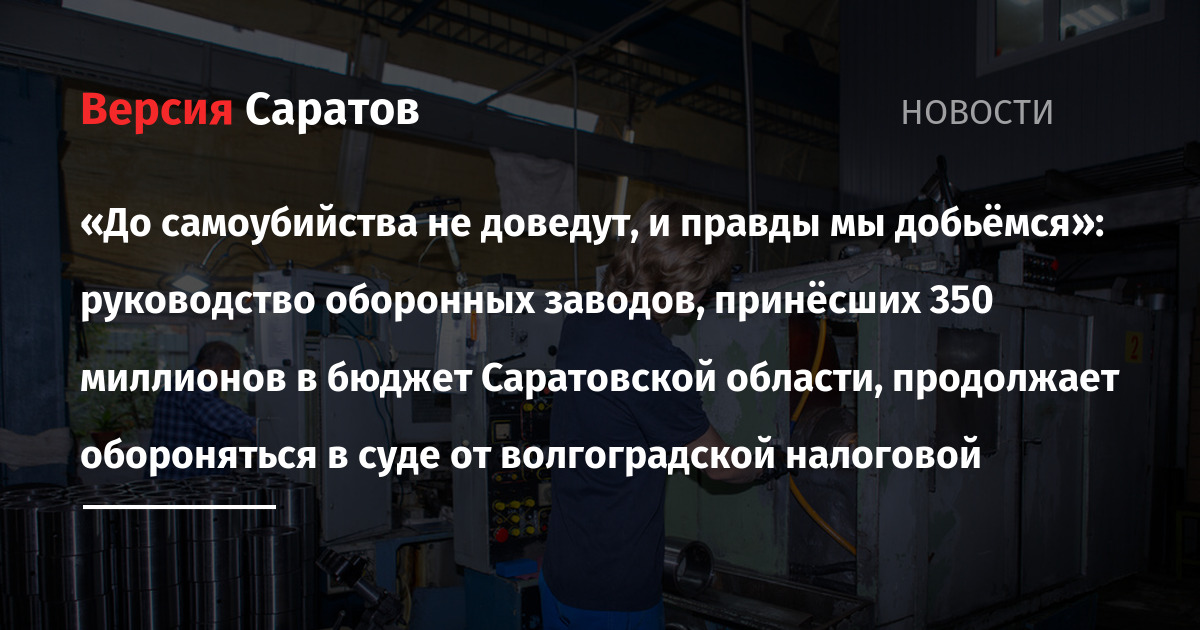 «До самоубийства не доведут, и правды мы добьёмся»: руководство оборонных заводов, принёсших 350 миллионов в бюджет Саратовской области, продолжает обороняться в суде от волгоградской налоговой