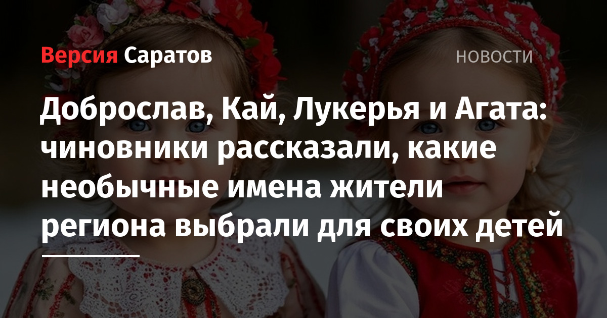 Жители Саратовской области продолжают называть детей редкими именами. Статистику опубликовали в управлении по делам загс правительства региона. За неделю в области родились Доброслав, Лукерья, Кай, Влада, Мирон, Злата, Милена, Агата и Ян.