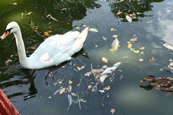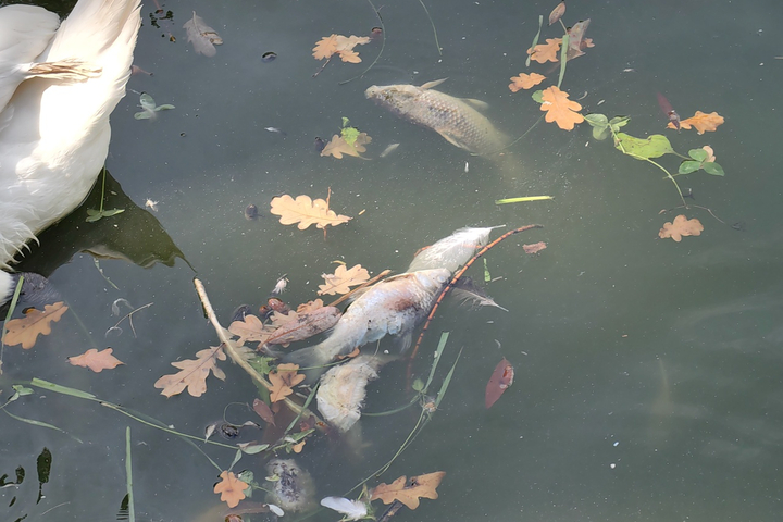 В одном из прудов произошла массовая гибель рыбы. Трупы никто даже не пытается вылавливать. Они гниют в воде, наполняя воздух вокруг отвратным зловонием.