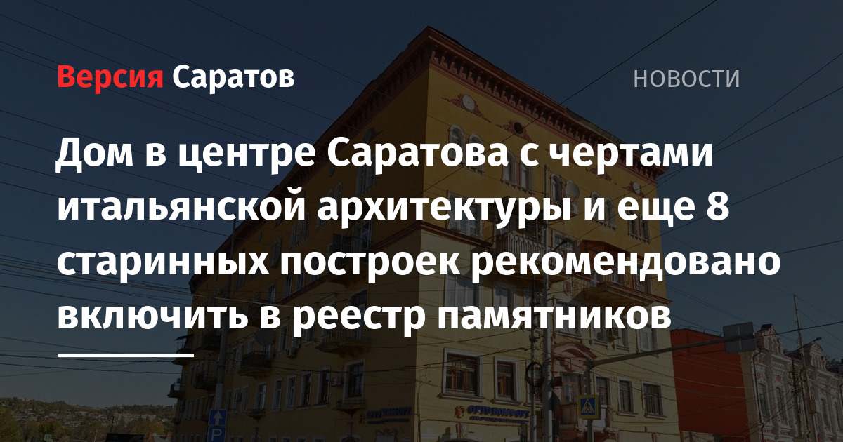 - Шесть старинных домов в центре Саратова и на 4-й Дачной рекомендовано признать памятниками