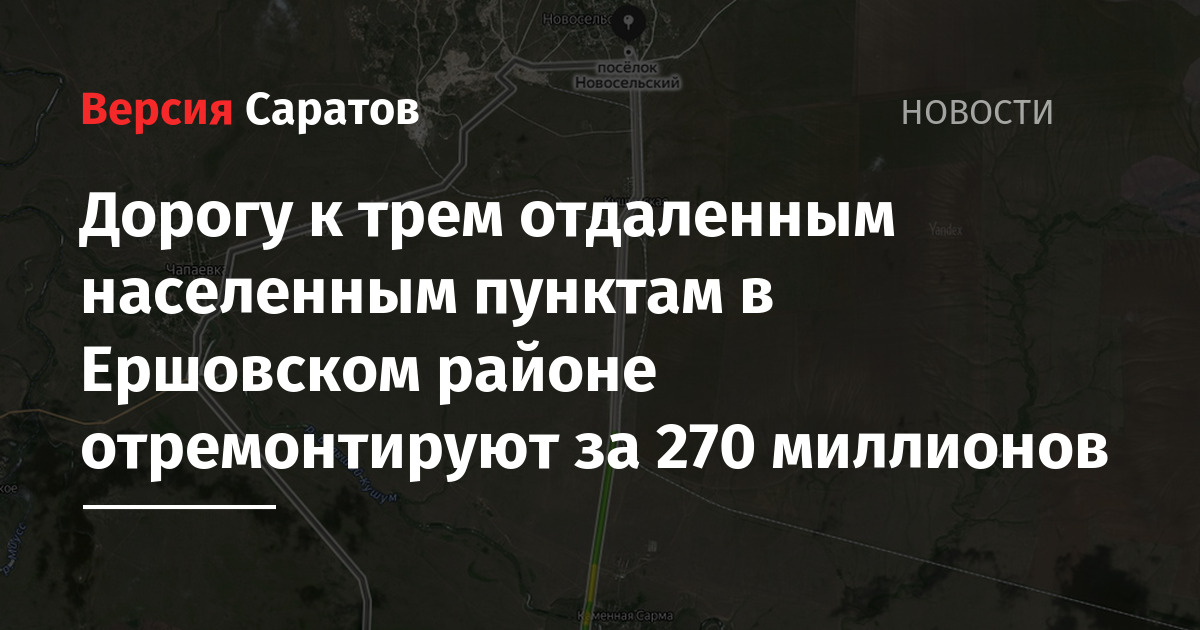 В Ершовском районе Саратовской области отремонтируют дорогу до трех отдаленных населенных пунктов. На ремонт ГКУ «Дирекция дорожного хозяйства» готова потратить 270,88 миллиона рублей из бюджета региона.