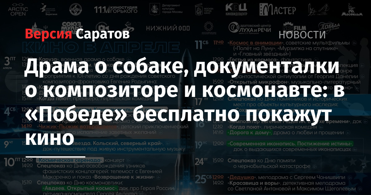 Кинотеатр Победа в Саратове (площадь Кирова, 1) представил афишу на апрель 2026 года. Саратовцы смогут бесплатно посмотреть следующие фильмы: