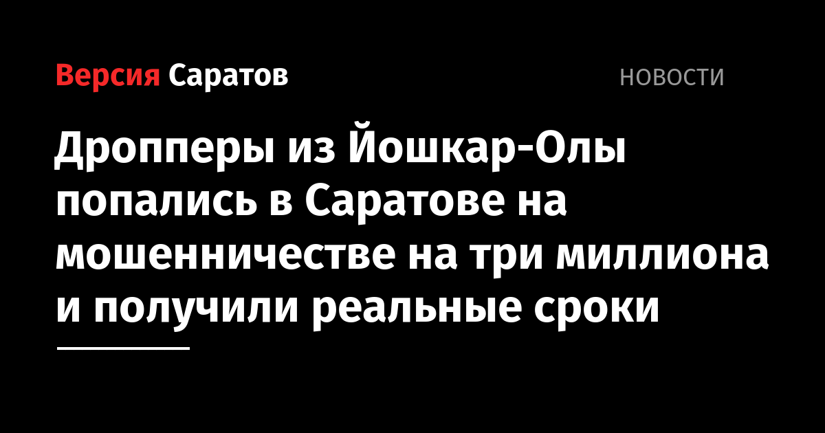 «Установлено, что трое обвиняемых с использованием своих и чужих банковских карт обналичили денежные средства в сумме 3 миллиона 122 тысячи 500 рублей, похищенные у жительницы города Саратова в результате мошенничества (под предлогом звонка сотрудника ФСБ, требующего в подтверждение того, что женщина не планирует переводить деньги на финансирование вооружённых формирований одной из недружественных стран, перевести деньги на безопасные счета ФСБ)», — напомнили в ГУ МВД по Саратовской области.