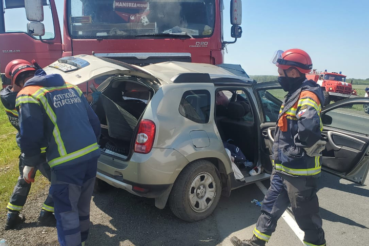 В результате аварии погибли двое мужчин и годовалый ребенок. Сотрудники областной службы спасения деблокировали из покореженной легковушки тела умерших людей.