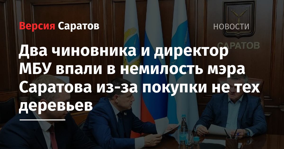 Глава Саратова Михаил Исаев объявил замечание главе Фрунзенского района Сергею Пименову и его заместителю по благоустройству Александру Власову, а директору МБУ «Спецхозяйство по уборке города» Игорю Рыпалову объявлен выговор. Негодование мэра подчиненные навлекли на себя покупкой деревьев.