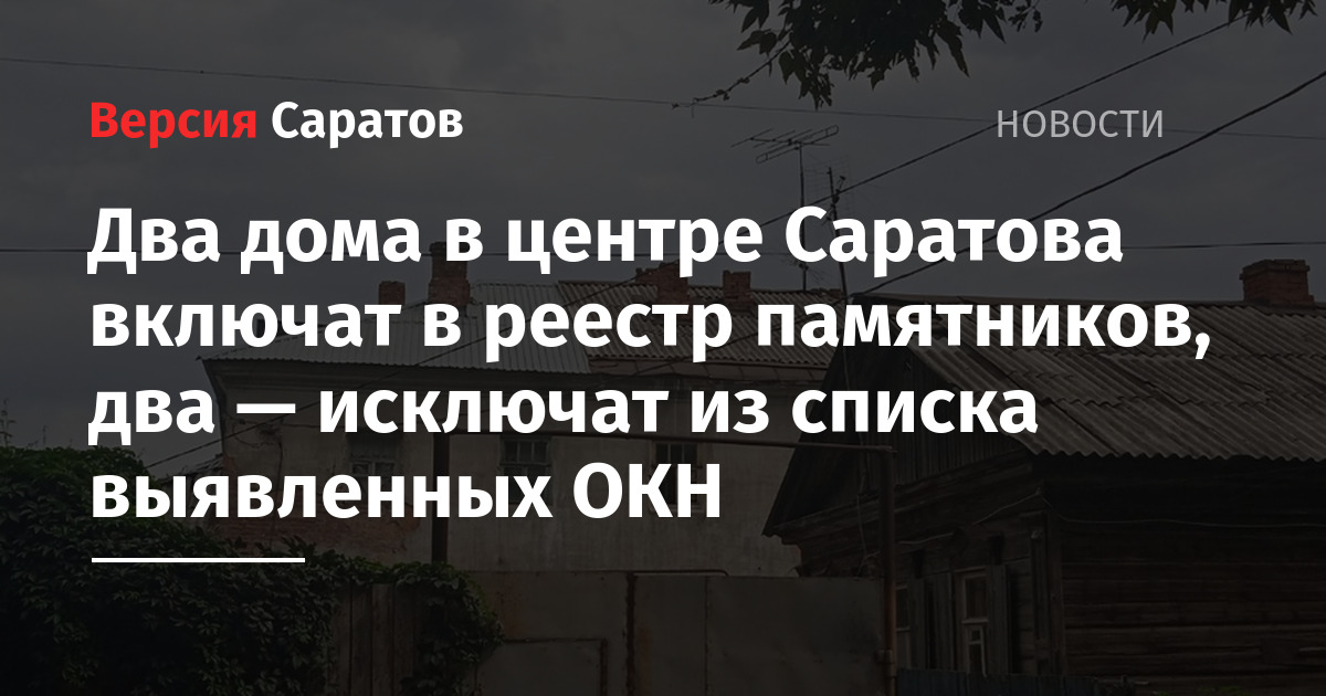 В Саратове подготовлены проекты приказов комитета культурного наследия, которые касаются судьбы четырех исторических домов в центре города. Два из них рекомендовано исключить из списка выявленных объектов культурного наследия, а два, напротив, включить в государственный реестр. Документы опубликованы сегодня, 9 февраля, на сайте областного правительства.