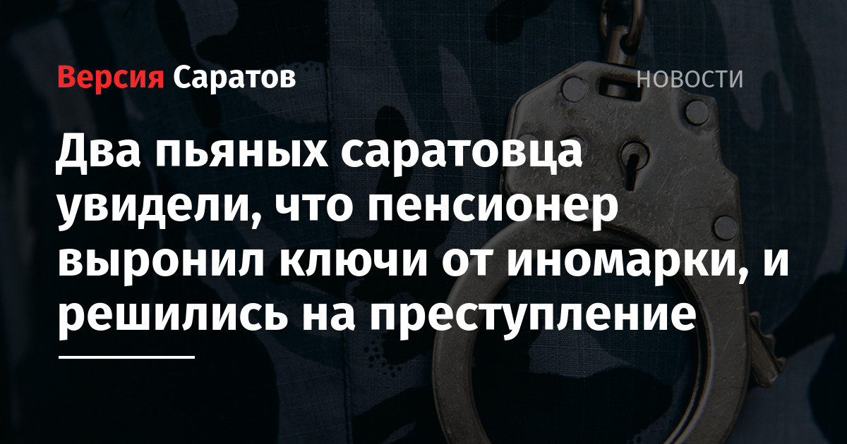 Сотрудниками полиции было установлено, что на иномарке уехали два саратовца, которые выпивали во дворе дома заявителя. Подозреваемые были доставлены в отдел полиции. Выяснилось, что управлял авто 53-летний ранее судимый за кражу мужчина. С ним ехал 32-летний знакомый, ранее судимый за грабеж и умышленное причинение средней тяжести вреда здоровью. Они воспользовались ключами от автомобиля, которые выронил его владелец. Однако далеко уехать злоумышленникам не удалось — автомобиль был остановлен сотрудниками ДПС.