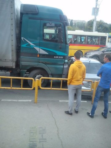 Днем 11 сентября на пересечении проспекта 50 лет Октября и улицы Алексеевская произошло ДТП. Грузовик Mercedes протаранил Mitsubishi Lancer, удар пришелся в левый бок легкового автомобиля. По предварительным данным, в ДТП никто не пострадал.