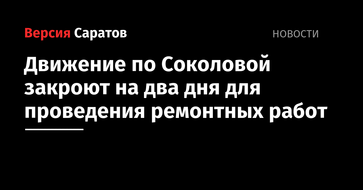 Движение автотранспорта по улице Соколовой сегодня в 20 часов будет временно остановлено. Речь идет об участках между улицами Университетская и Железнодорожная, а также перекрестке Соколовой с улицей Танкистов.