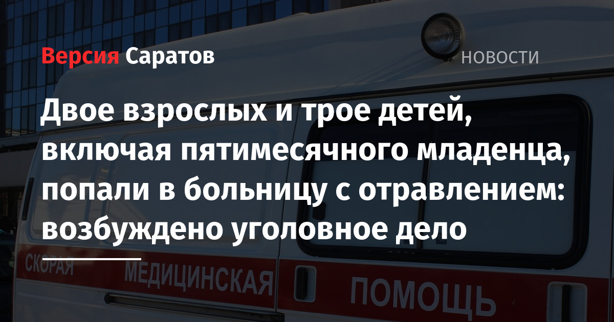 В Саратовской области возбудили уголовное дело после того, как пять человек в Балашове были госпитализированы, надышавшись угарным газом. ЧП произошло 3 января. В больницу попали члены одной семьи: двое взрослых и трое детей. Младшему ребенку, по информации регионального управления СК РФ, всего пять месяцев.