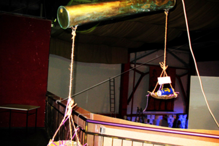 Бутафорский взгляд на категорию времени через старые вещи предложил Геннадий Андрианов. Для этого нужно бросить в пенопластовую чашу останки часового и других механизмов и покрутить ручку регулятора, чтобы они превратились в нечто новое.
