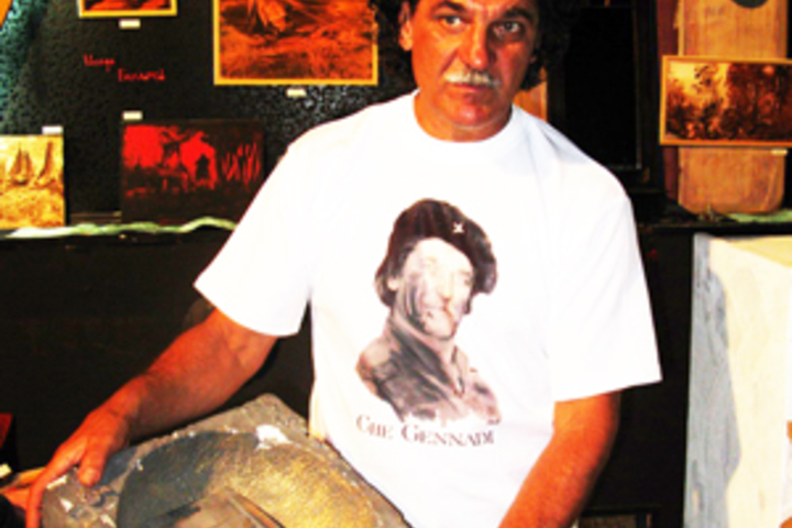 На картинах Игоря Бахарева - нереальные пейзажи в коричнево-желтой гамме. Художник сначала ставит кляксы, а потом превращает их в фантастический ландшафт. Игорь уверен, что это - реальность будущего и, если присмотреться, можно увидеть знакомые природные формы.
