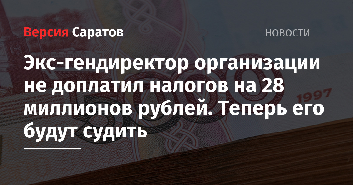 Экс-гендиректор организации не доплатил налогов на 28 миллионов рублей. Теперь его будут судить