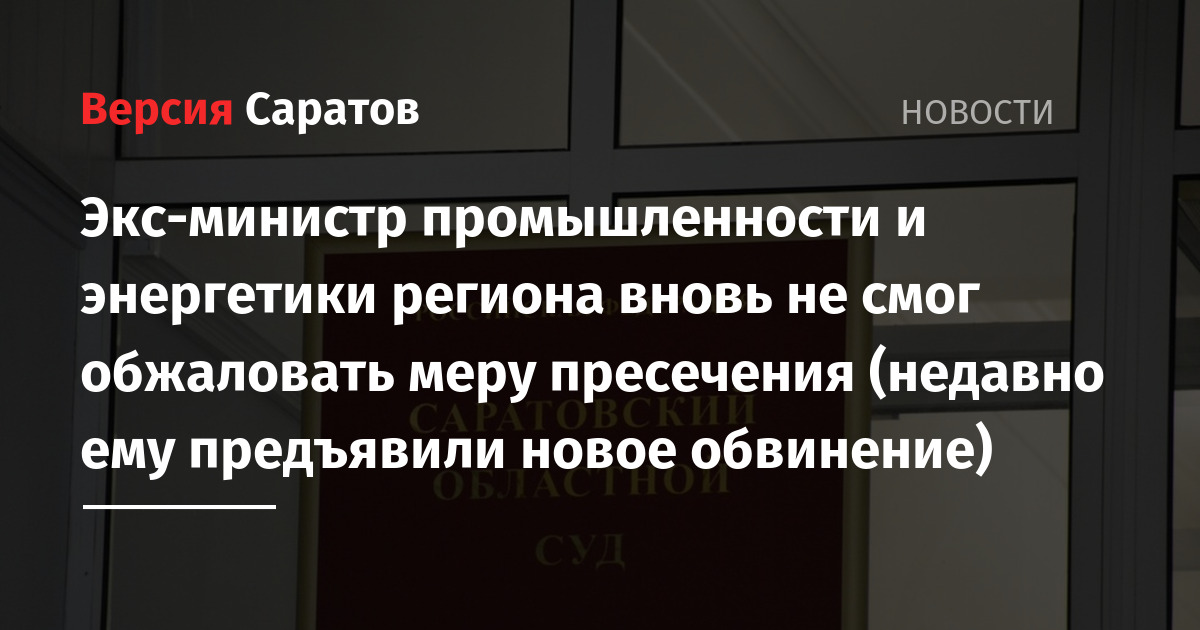 Экс-министр промышленности и энергетики Саратовской области Максим Шихалов вновь не смог обжаловать избранную меру пресечения. Об этом ИА «Версия-Саратов» рассказали в Саратовском областном суде.