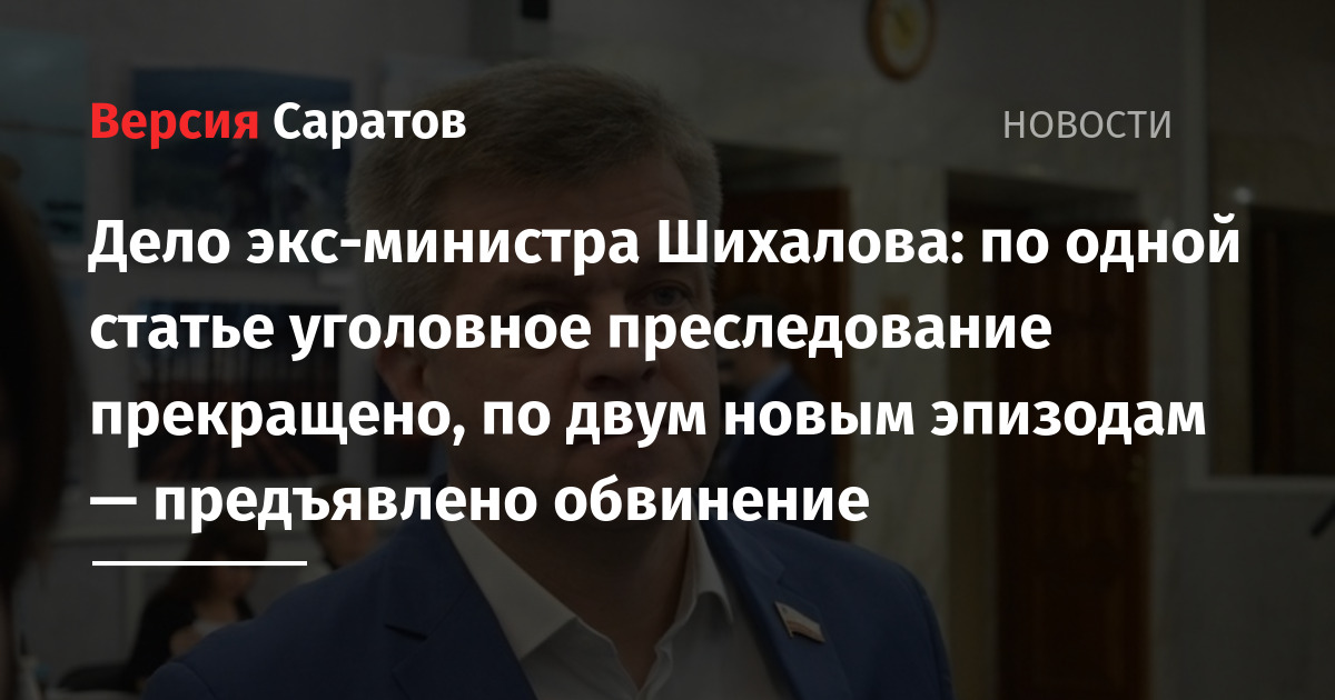 Как рассказали нашему корреспонденту в суде, 23 октября Шихалову предъявили обвинение в двух эпизодах присвоения или растраты (ч. 4 ст. 160). По статье о злоупотреблении должностными полномочиями (ч. 1 ст. 285.4 УК РФ) уголовное преследование прекратили. Кроме того, Шихалову в очередной раз продлили меру пресечения, на этот раз — до 22 ноября включительно.