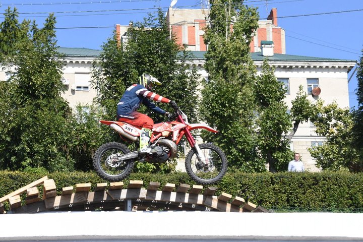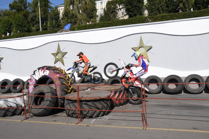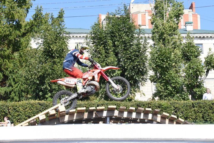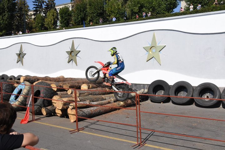 Сегодня в Саратове на Набережной Космонавтов прошло открытое первенство города по экстрим-эндуро. Мотоциклисты соревновались в скорости преодоления трассы с препятствиями. В беседе с корреспондентом ИА «Версия-Саратов» главный судья соревнований Борис Телегин сообщил: «Это новая дисциплина в мотоспорте. Местная федерация уже не в первый раз проводит мероприятие в таком формате. Оно совпало с Днем города, поэтому мы получили довольных зрителей и заинтересованных спортсменов».
