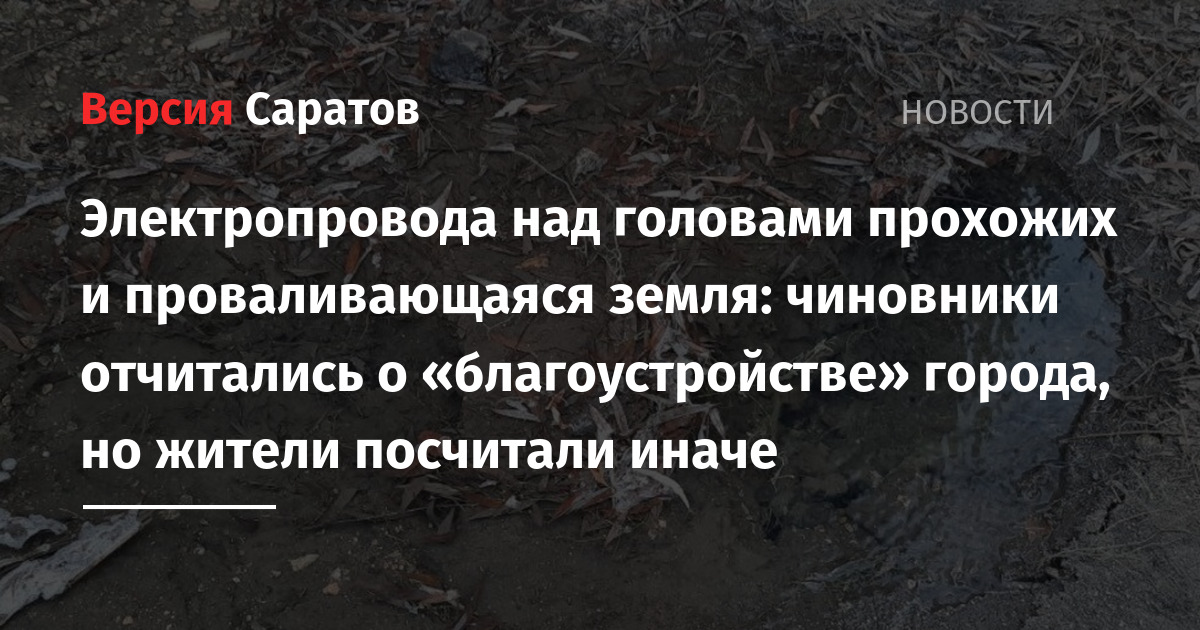На саратовских улицах текут «реки» и проваливается земля, а электропровода опасно свисают над головами прохожих. Об этом написали местные жители в Telegram-канале мэрии.