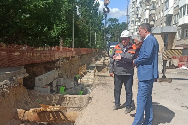 Директор саратовского филиала «Т Плюс» Сергей Анташев и глава комитета по вопросам жилищной, строительной и коммунальной политики Саратовской областной думы Александр Бурмак проинспектировали ход реконструкции теплосетей на центральных улицах Саратова.