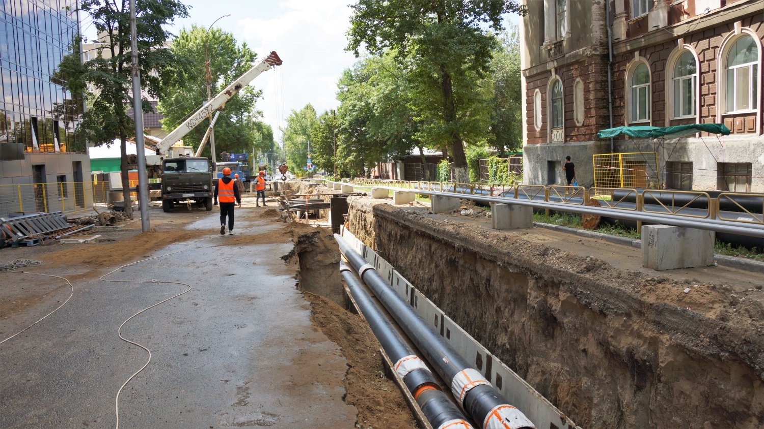 «Первый слой асфальта уже уложен. Планируем до конца недели завершить благоустройство и открыть движение на участке от Рахова до Пугачева. Работы по Хользунова продолжаются. На участке от Мичурина до Рабочей частично выполнена укладка лотков и трубопроводов. График работ подрядчиком соблюдается, несмотря на возникающие трудности», — рассказал технический директор — главный инженер Саратовских тепловых сетей Иван Новичков.