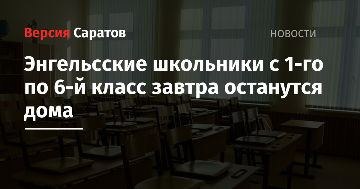 В школах Энгельсского района завтра отменяются занятия для учащихся с 1-го по 6-й класс. Об этом сообщает администрация района. Отмена связана с низкой температурой наружного воздуха, которая ожидается завтра. Занятия в учреждениях дополнительного образования также отменяются.