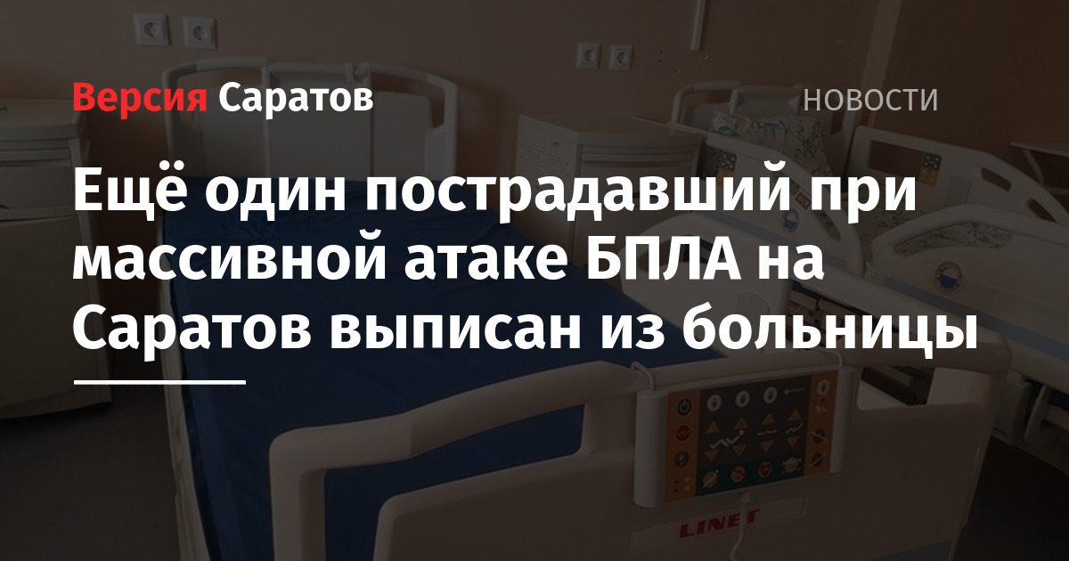 Стало известно о состоянии пострадавшего, который оставался в больнице после атаки БПЛА на Саратов, произошедшей 8 ноября. О пациенте ИА «Версия-Саратов» рассказали в региональном минздраве.