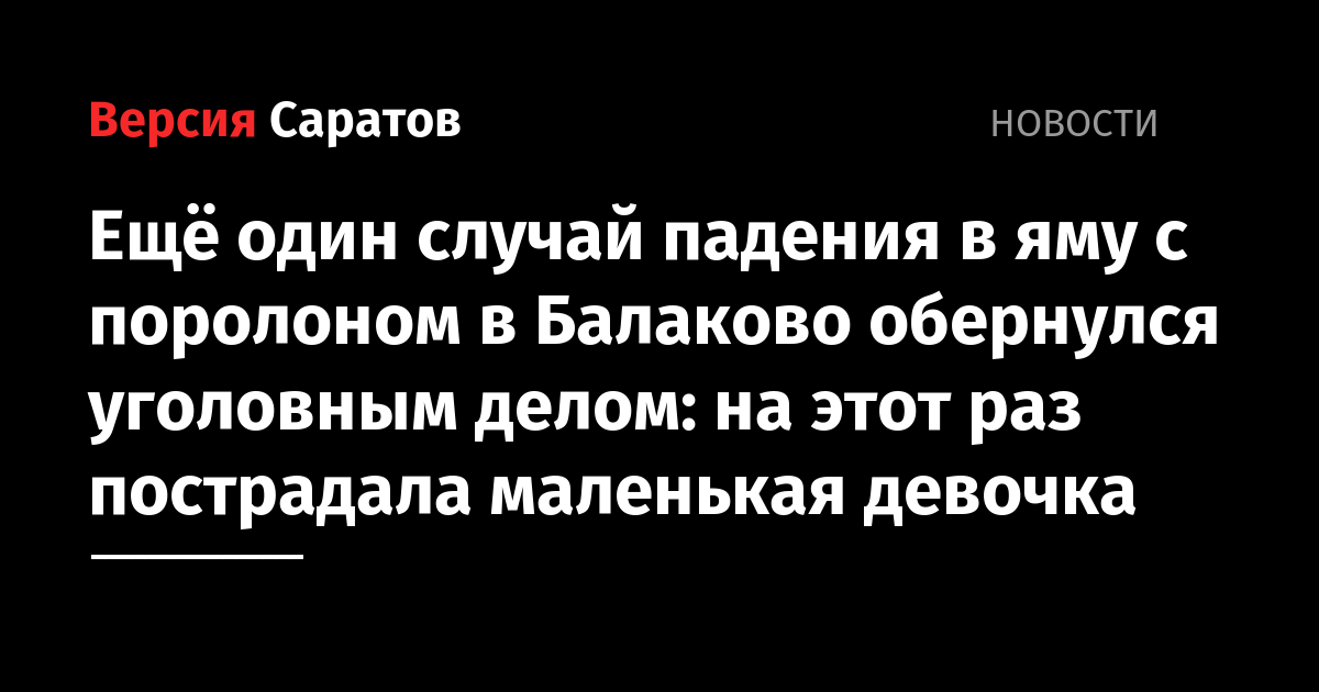 Ещё один случай падения в яму с поролоном в Балаково обернулся уголовным делом: на этот раз пострадала маленькая девочка