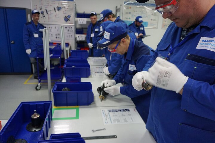 «Фабрика процессов» — особый формат тренингов, направленных на повышение квалификации сотрудников в области применения инструментов бережливого производства. На практических занятиях происходит полное погружение в производственный процесс, выявляются связи между улучшениями и общими экономическими показателями организации. Обучение проходит на основе моделирования процессов сборки определенного изделия. Это полностью интерактивный обучающий формат. Участникам предлагается провести сборку необходимого количества изделий за определенное время. Результаты работы команды оцениваются по следующим показателям: количество изделий, себестоимость продукции, прибыль.