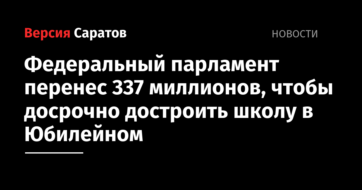 Федеральный парламент перенес 337 миллионов, чтобы досрочно достроить школу в Юбилейном